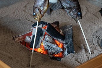 大和火鉢を使って日本の昔を体験してみませんか?鉄瓶に淹れたお茶、野菜や魚などを炙ったり、焼き芋を焼いてみたり。ホッとするような時間を「岩穴の火」と共に体験しましょう。